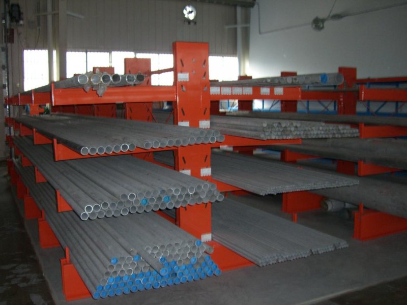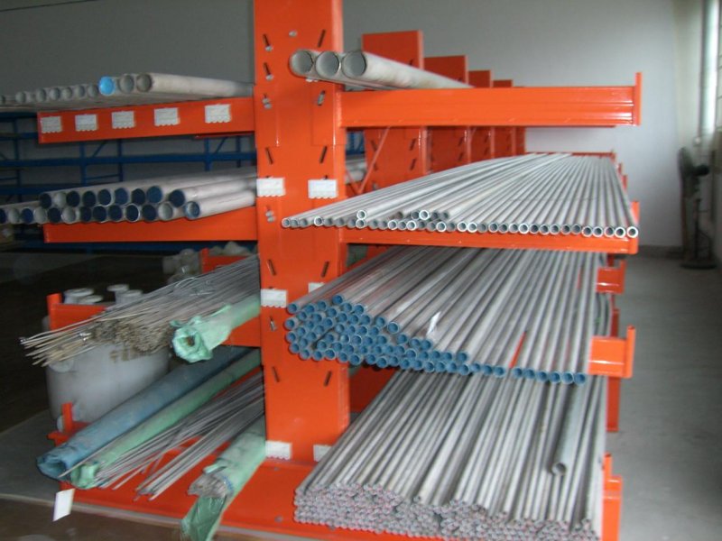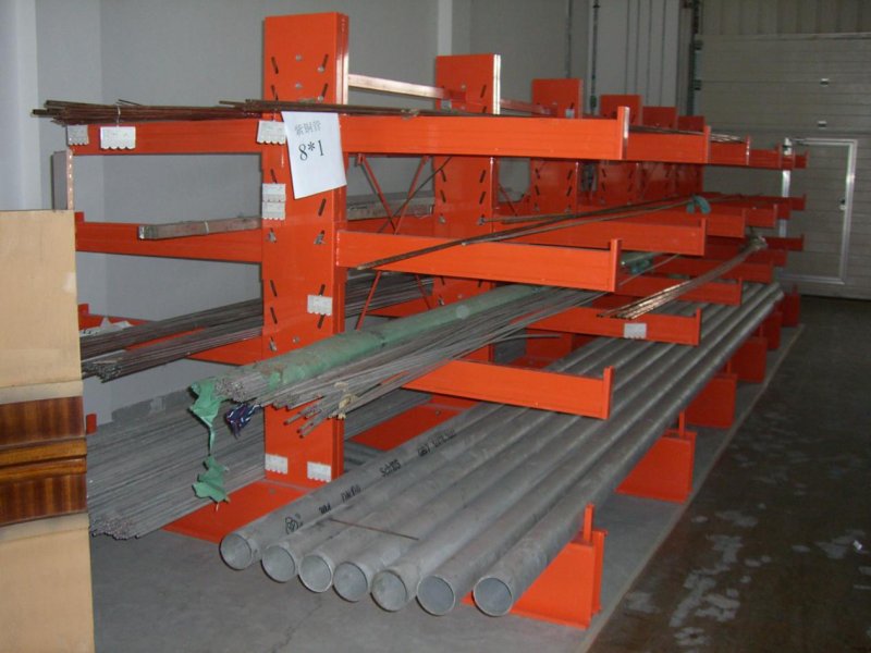 存放鋼制管件或者鋁制型材等,產品本身的長度一般為6m。輕型懸臂貨架和中型懸臂貨架是人工存放的貨架系統。通道尺寸1000-1500mm。高度一般為2m。在配套叉車使用后,高度可以做到5-12m。通道尺寸為2800-3000mm。需要使用專業叉車操作,這類貨架由于高度增加,和本身防止叉車作業風險的保護。會采用重型懸臂貨架要求設計。懸臂可以是單面或雙面,懸臂式貨架具有結構穩定,載重能力好、空間利用率高等特點。懸臂式貨架多用于機械制造行業和建材超市等。加了擱板后,特別適合空間小,高度低的庫房,管理方便,視野寬闊,利用率比普通貨架更高。懸臂式貨架是在傳統式貨架支柱上裝設外懸臂而成,是一種長形物專用的貨架。