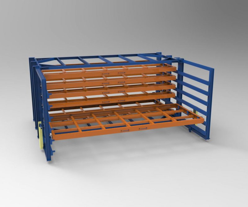 金屬板材存放貨架 板材堆放架工程項目 節。汗澥〈罅繌S房空間,抽屜式結構,可以15層存放,占地空間小,存儲量高。鋼板可以分層分類的存放在同一組貨架上,幾十種規格尺寸材質的鋼板存放在貨架上,瞬間廠房變得寬敞 整齊 明亮,抽屜式結構不需要叉車不需要工業巷道。天車存放節省人力,單人可以完成所有的操作,存取速度快,節省時間。 安全:鋼板存放在地面上占用的空間大,各種規格的鋼板都堆放在一起雜亂無章,容易磕磕絆絆,上面的鋼板還容易滑動,存在安全隱患,鋼板比較鋒利,人工存取還容易劃傷操作者,存在人員安全隱患。鋼板存放架還可以保護板材,防止鋼板在運輸中帶來損耗,特別是貴重金屬板材防止劃傷 刮傷 卷邊等情況的發生。 方便:鋼板存放架采用抽屜式結構,每層抽屜單獨拉出,方便鋼板的存取,特別是中間的鋼板也可以直接存放,不受上層或下層鋼板抽屜的影響,讓存取使用更方便。抽屜高標準拉出,操作方便。 快捷:鋼板存放架使用天車存放鋼板,存取速度快捷,鋼板直接存取,幾十種鋼板擺放在不同的抽屜里,貨物一名了然,不用浪費過多的時間,快速的存放所有使用的鋼板,不用反復整理挪動,讓廠房空間迅速寬敞起來。