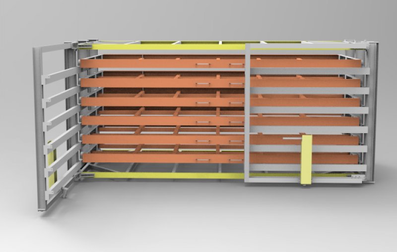 完全打開后,抽出層板即可存取板材工件。