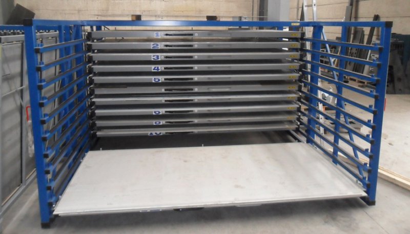 概述:大型板材存放貨架帶有自動移動框的移動式貨架緊湊,方便定位金屬板位置,移動框架帶有滑輪和搖臂,選好目標板材之后移動懸臂即可創造空間獲取板材。移動框架固定在兩條平行軌道上,通過移動框架,人員方可進入空擋獲取金屬板是一種簡單安全的搬運..